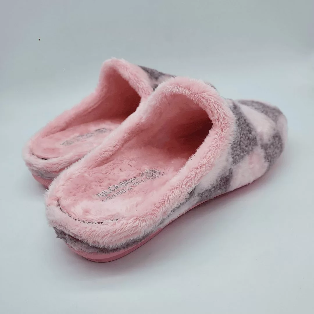 Vulca-Bicha Mod. 315, Zapatilla Plana de Invierno para Mujer, confeccionada en Tejido Aterciopelado acabado color Rosa, con Plantilla Acolchada Extraible. Suela de Caucho. Hecha en España.