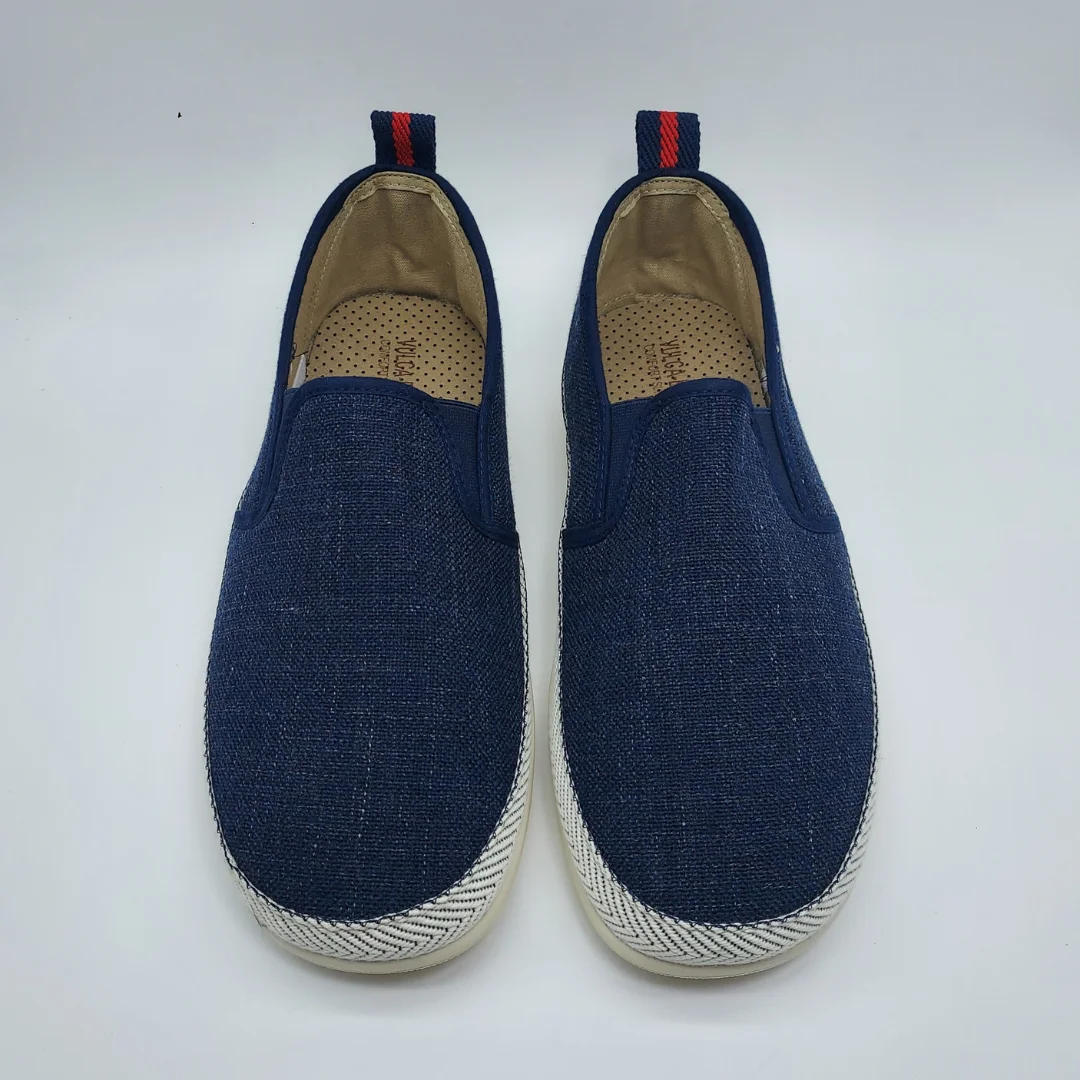 Vulca-Bicha Mod. 4633, Alpargata para Hombre confeccionada en Tejido Textil acabado Rubi color Marino, Suela de Caucho con adornos en Textil y trasera con bandas en color y tirador para facilitar su puesta. Plantilla Extraible. Hecha en España.