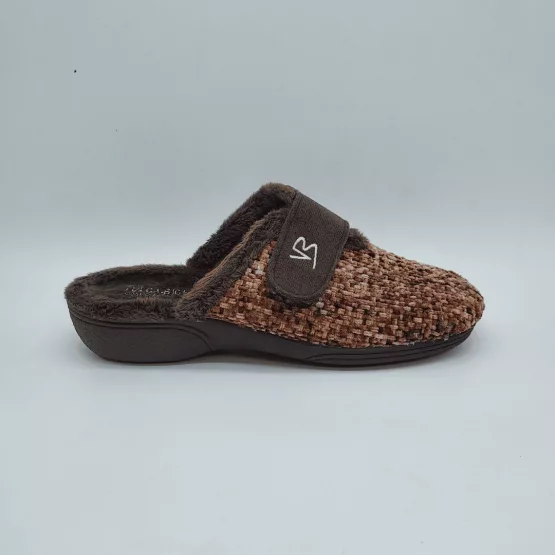 Vulca-Bicha Mod. 4708, Zapatilla de Invierno con Cuña para Mujer, confeccionada en Tejido Pana acabado color Marrón, con Velcro regulable para horma ancha. Suela de Caucho Natural. Hecha en España.