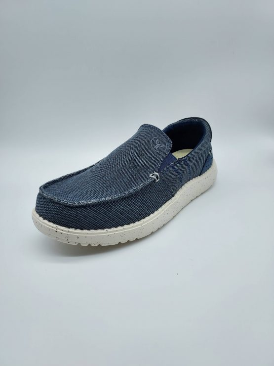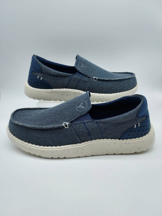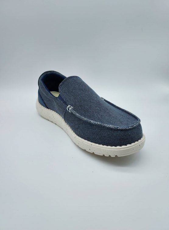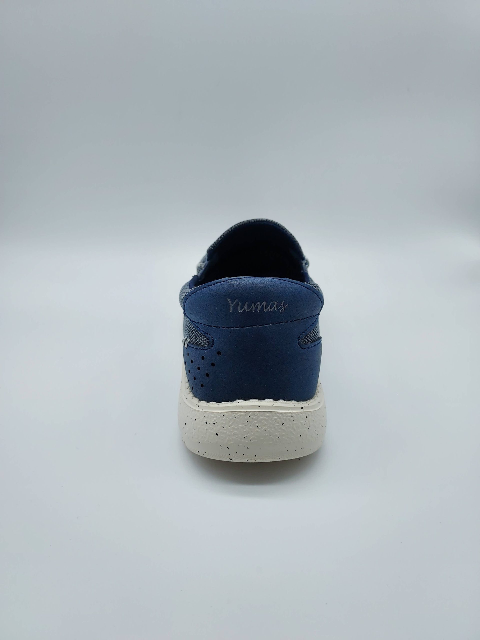 Yumas Mod. 48162, Mocasín estilo deportivo, acabado Minesota Marino. Fabricado en material textil de primera calidad con detalles de costuras y refuerzo en el talón para aumentar su durabilidad. Con elástico en los laterales, Forro interior textil y cómoda Plantilla Interior. Suela de EVA color Blanco, antideslizante.