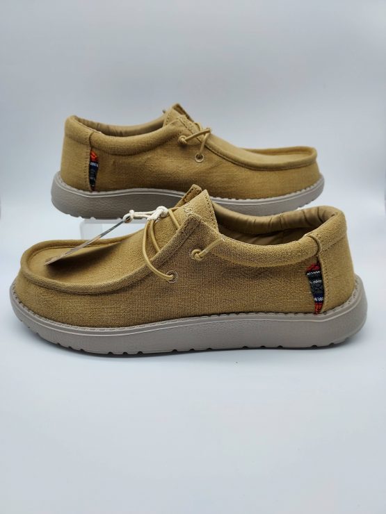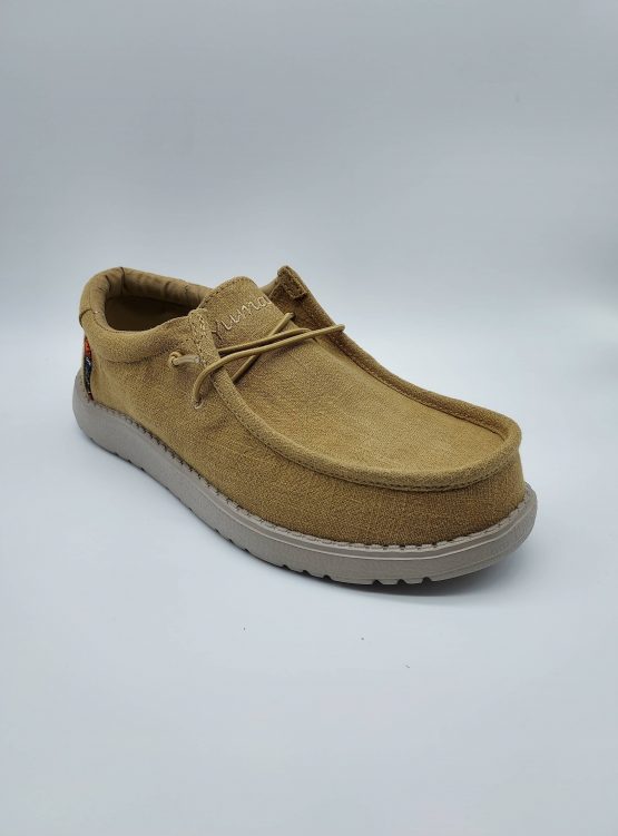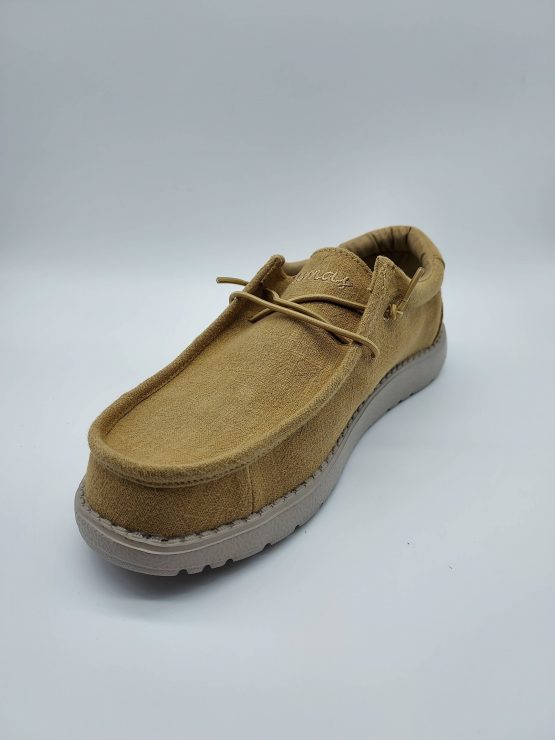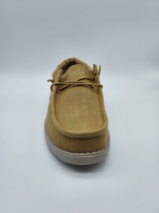 Yumas Mod. 50153, Wallaby estilo deportivo, acabado Texas Cuero. Fabricado en material textil de primera calidad con detalles naúticos y refuerzo en el talón para aumentar su durabilidad. Con Cordones elásticos, Forro interior textil y cómoda Plantilla Interior. Suela de EVA color Blanco, antideslizante.